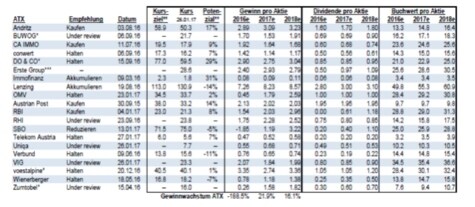 Ausblick. In dieser Woche sollte der ATX einen neuerlichen Angriff auf die 2.730 Punkte-Marke starten. Unternehmensseitig erwarten wir das Jahresergebnis 2016 der Telekom Austria sowie das Q3-Ergebnis der AT&S. Die Sitzung des geldpolitischen Ausschusses der US-Notenbank (FOMC) wird diese Woche sicherlich das meist beachtete Ereignis an den Kapitalmärkten sein.