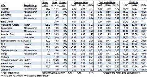 Ausblick. In dieser Woche setzt sich die Berichtssaison fort. Auf dem Programm stehen Zahlen von AT&S, OMV, RHI, Lenzing, RBI, RHI, UBM und Österreichische Post. Die Ergebnisse werden aber so wie in den vergangenen Wochen eine eher untergeordnete Rolle spielen. Der ATX wird sich weiterhin an internationale Vorgaben halten. Kursfeuerwerke sind nicht zu erwarten. Wir rechnen am ehesten mit einer saisonal leicht eingetrübten Stimmung. Den ATX sehen wir bei rund 2.200 Punkten.