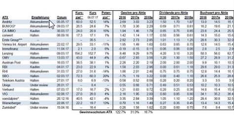 Gewinnschätzungen Österreich - ATX